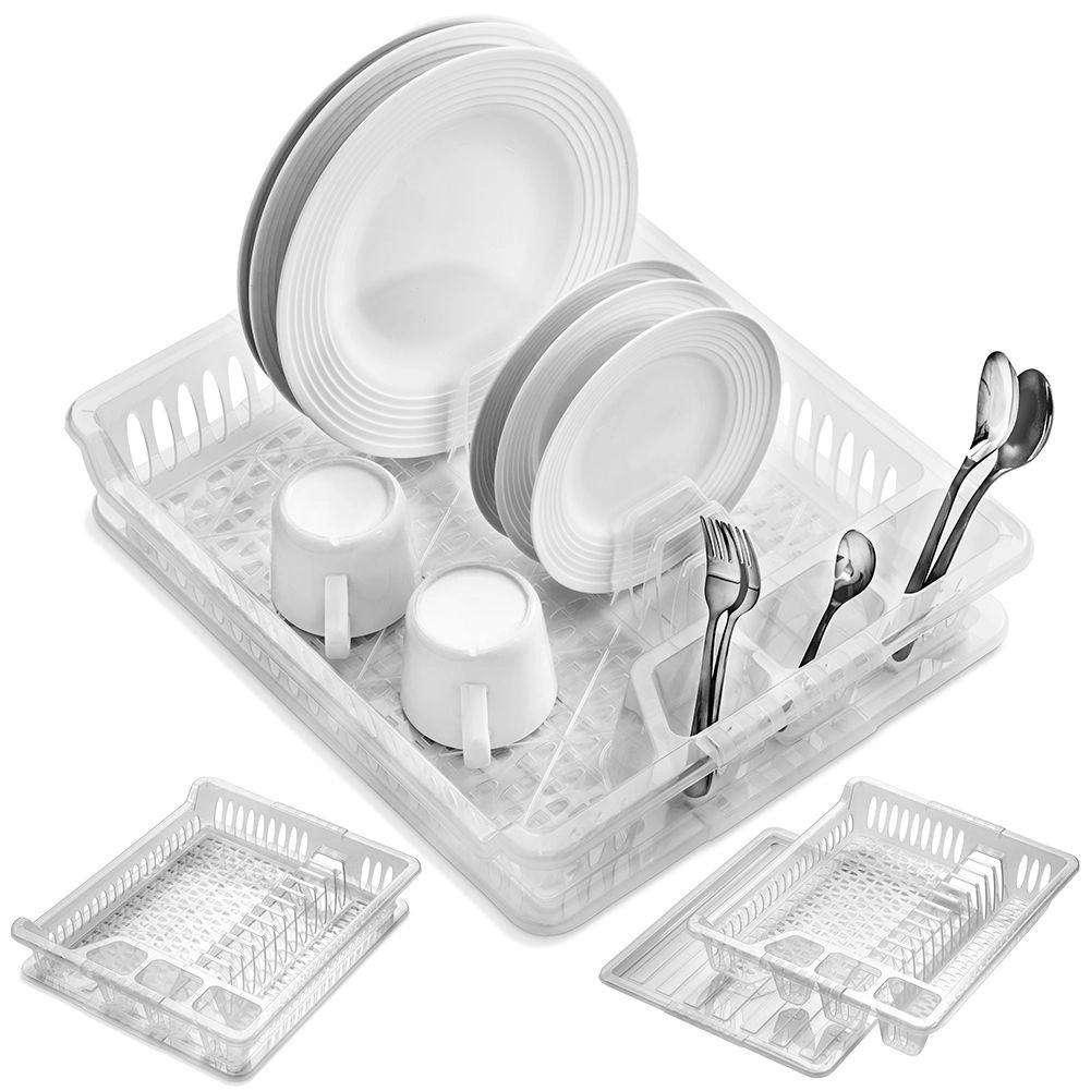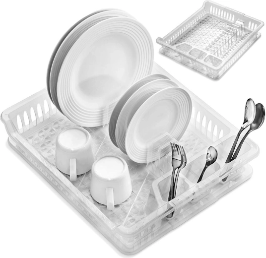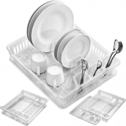 Praktičen odkapljalnik za posodo je nepogrešljiv pomočnik v vsaki kuhinji. Z domiselnimi režami in predelki zlahka uredite pomite krožnike, kozarce, sklede in pribor. Odstranljiv pladenj za odtekanje prestreže vodo in olajša čiščenje, zato delovni pult ostane brez kapljic.