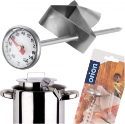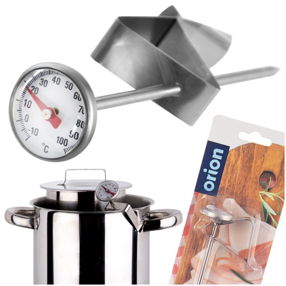 Ta trpežen termometer iz nerjavnega jekla je idealen za vsakodnevno kuhanje, pečenje, cvrenje in pripravo pijač. Kovinska sonda hitro zazna temperaturo, velik analogni kazalnik pa omogoča enostavno in hitro branje. Zahvaljujoč praktični sponki termometer varno pritrdite na rob posode – tako imate stabilno in natančno merjenje brez potrebe po držanju v roki.