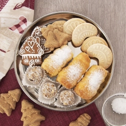 Ta okrogel pladenj iz nerjavnega jekla s polirano površino prinaša brezčasen videz in praktično uporabo za vsakodnevno pogrinjanje in slavnostne priložnosti. Zahvaljujoč povišanemu robu je postrežba varna in stabilna, gladka površina pa se zlahka čisti.