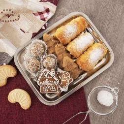 Obodni rob preprečuje zdrs priboljškov in olajša rokovanje pri serviranju.