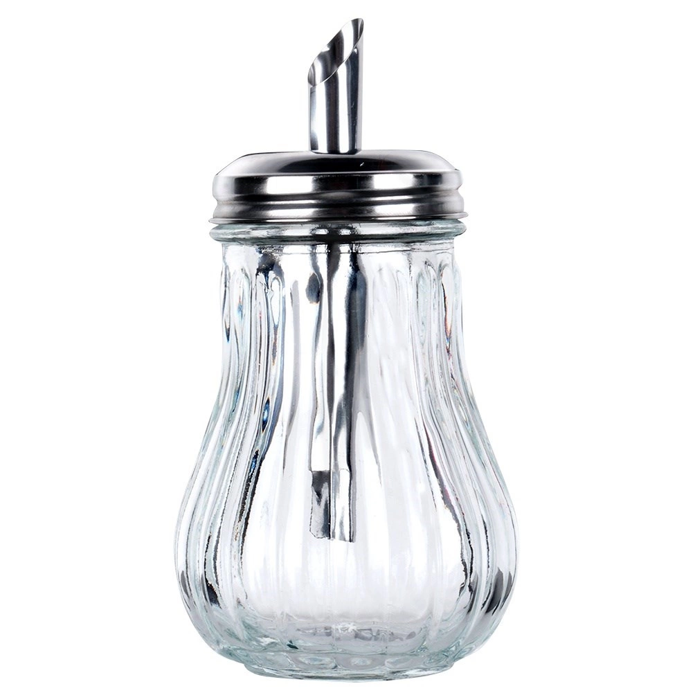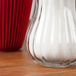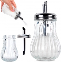 Ta steklena posodica za sladkor s praktičnim dozirnikom omogoča hitro in čisto sladkanje kave, čaja in sladic. En preklop ustreza približno eni čajni žlički, zato vedno nasujete enako količino. Prozorno steklo nudi takojšen pregled nad zalogo, nerjavni pokrov z poševnim izlivom pa zagotavlja natančno in nadzorovano posipanje brez razsutja.