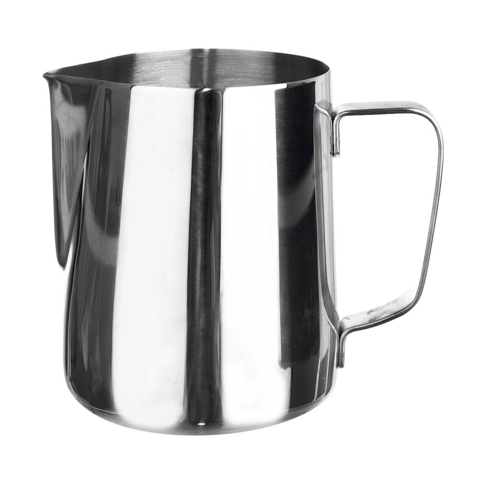 Nerjavni vrč za mleko s prostornino 350 ml je idealna izbira za domačo in kavarniško pripravo kave. Z natančnim izlivom zlahka nalijete mleko v cappuccino ali latte, notranja merilna lestvica na 50 ml pa zagotavlja pravilno odmerjanje potrebne količine. Trden ergonomski ročaj olajša rokovanje tudi pri vroči vsebini.