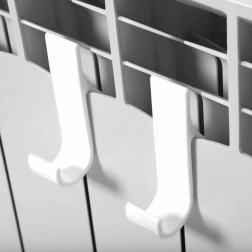 Oblika, prilagojena prečkam radiatorja, omogoča stabilno obešanje brisač in dodatkov neposredno na grelnem telesu za hitro sušenje.