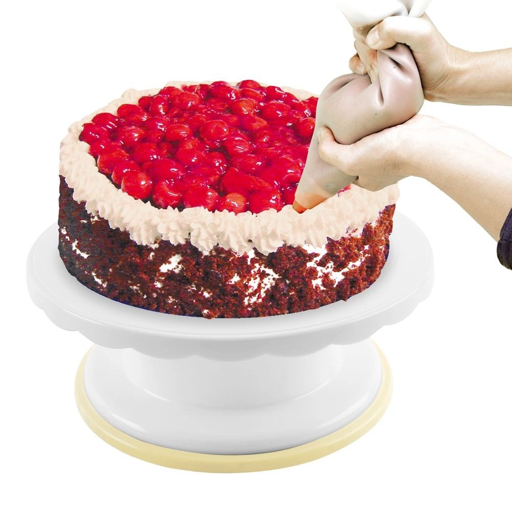Vrtljiv stoj za torte je nepogrešljiv pomočnik za domače in profesionalne slaščičarje. Stabilen podstavek s protizdrsnim obročem trdno stoji na mestu, medtem ko se pladenj gladko vrti v obe smeri za natančen nanos krem, glazur in dekoracij. Enostaven je za čiščenje in odporen za vsakodnevno uporabo.