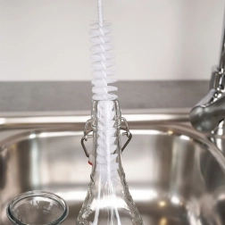 Praktična ščetka za steklenice dolžine 35,5 cm z ozko glavo za enostavno čiščenje ozkih posod. Zahvaljujoč dolgemu dosegu, čvrsti konstrukciji in kavlju za obešanje boste steklenice, vaze, čajnike in cevke očistili hitro in temeljito.