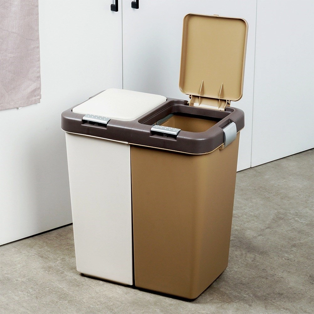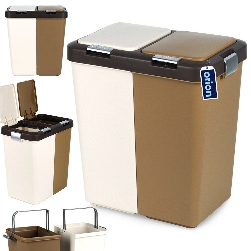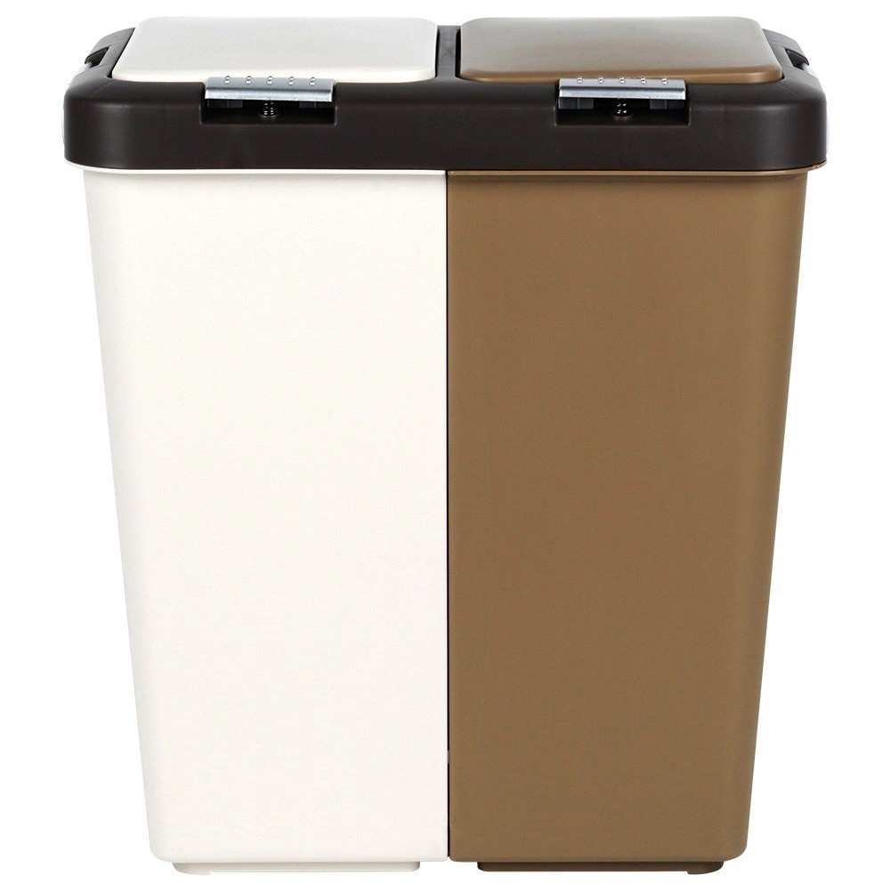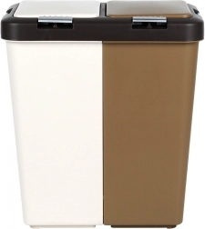 Koš je izdelan iz kakovostne in odporne plastike v brezčasni kombinaciji bele in rjave, zato je primeren za kuhinjo, pisarno, čakalnico in domačo delovno sobo. Dva prekata v enem ohišju prihranita prostor, ki bi ga sicer zasedla dva ločena koša.