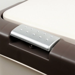 Kakovostna plastika v belo–rjavi kombinaciji prenese vsakodnevno uporabo, medtem ko ozko pravokotno ohišje prihrani prostor v manjših prostorih.