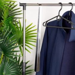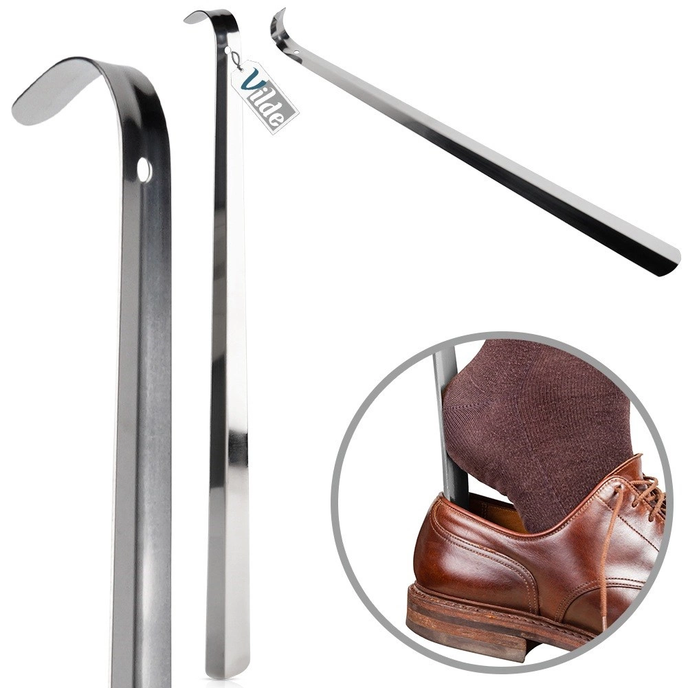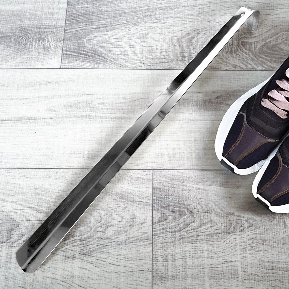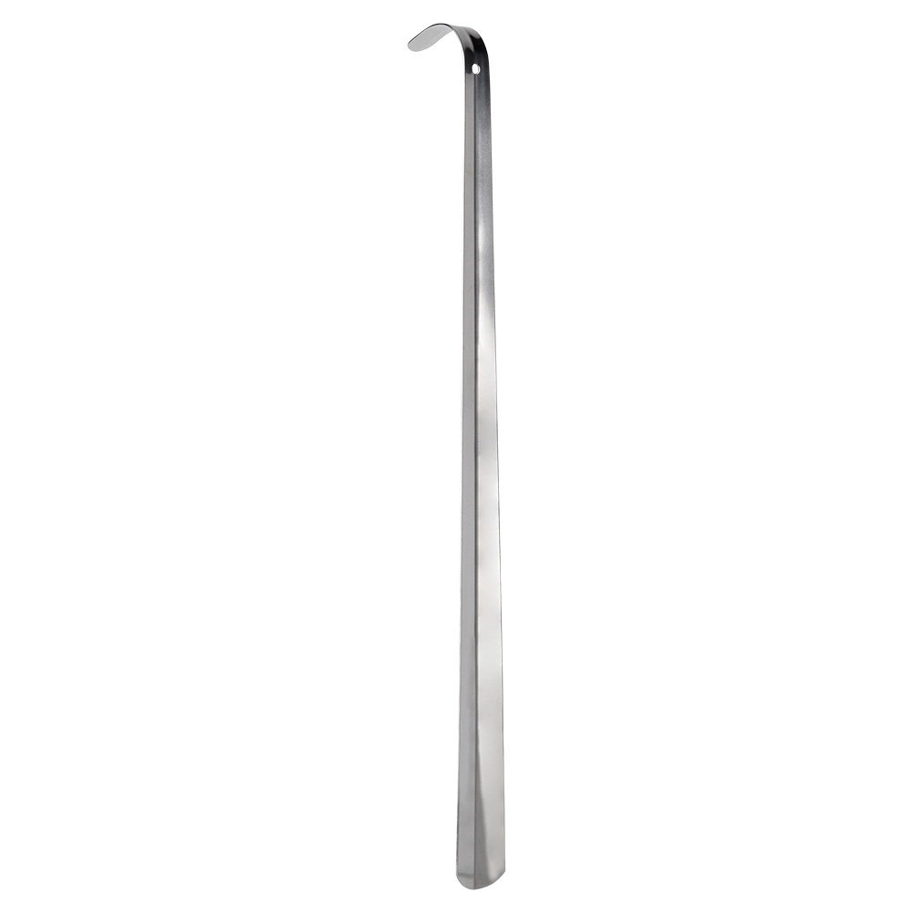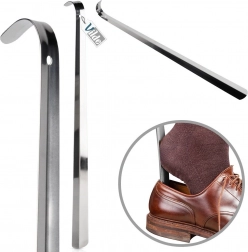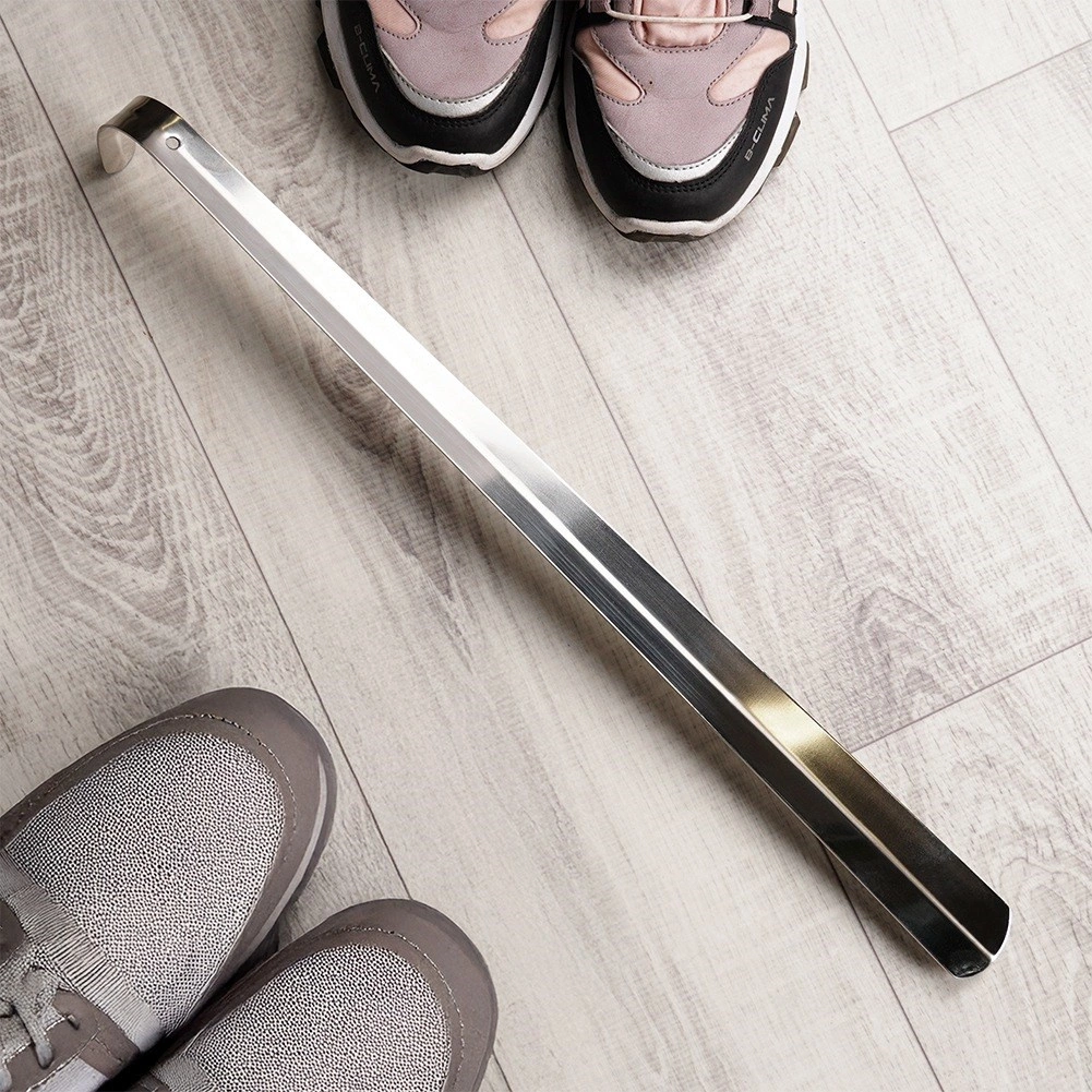 Robustna izvedba iz nerjavnega jekla zagotavlja dolgo življenjsko dobo, enostavno vzdrževanje in higiensko uporabo. Praktična odprtina za obešanje (kljukica) omogoča, da je pripomoček vedno pri roki v predsobi, garderobi ali trgovini z obutvijo.