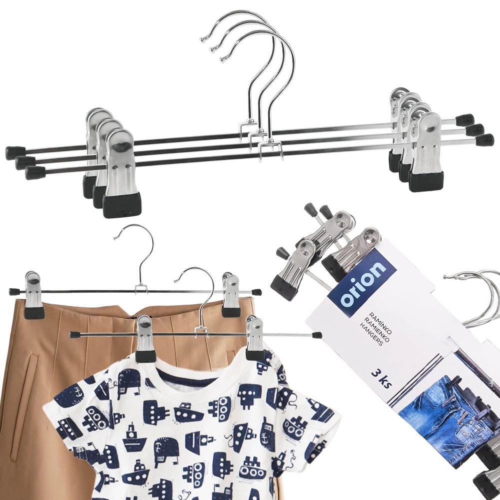 Obešalniki pomagajo prihraniti prostor, ohranjajo oblačila na mestu in preprečujejo zdrs. Primerni so za kavbojke, elegantne hlače, krila (mini in dolga), kratke hlače, kombinezone in otroška oblačila. Originalen izdelek znamke ORION, izdelan v skladu z evropskimi standardi.