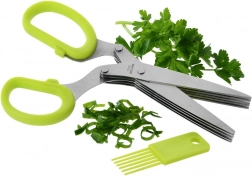 Poenostavite si pripravo jedi s škarjami za zelišča, ki z 5 rezili iz nerjavnega jekla režejo zelišča tudi petkrat hitreje. Idealne so za drobnjak, peteršilj, baziliko, meto, origano ali timijan ter zagotavljajo fine in enakomerne trakove za juhe, solate in marinade.