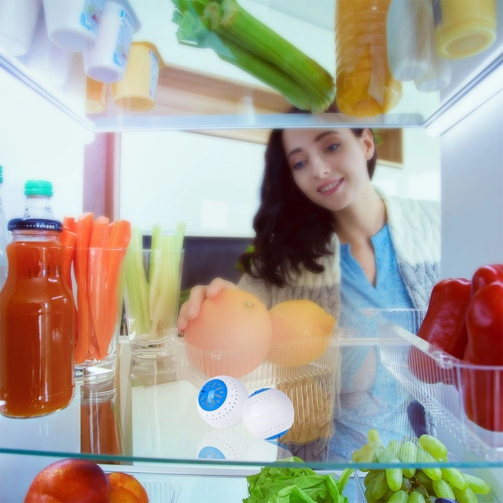 Kroglasta oblika s premerom 5 cm prihrani prostor. Nevtralizatorje lahko prosto postavite na polico, v vratca ali v predal za zelenjavo.
