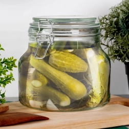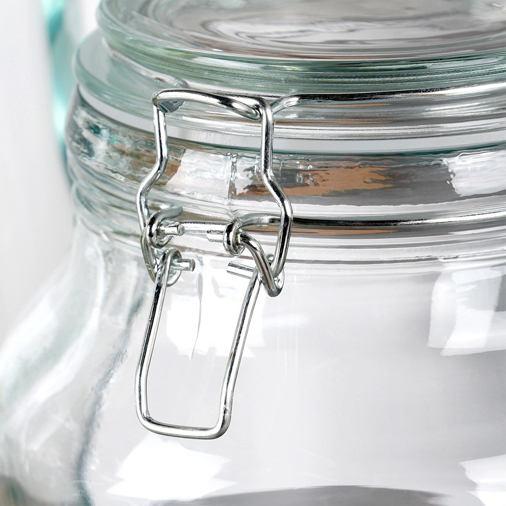 Steklena posoda IRMA s sponkastim zapiranjem združuje brezčasen dizajn in kakovostno izdelavo. Širok vrat olajša polnjenje in čiščenje, prosojno steklo omogoča hiter pregled vsebine brez odpiranja. Zahvaljujoč kakovostni kovinski sponki in belemu gumijastemu tesnilu je zapiranje zanesljivo zrakotesno.