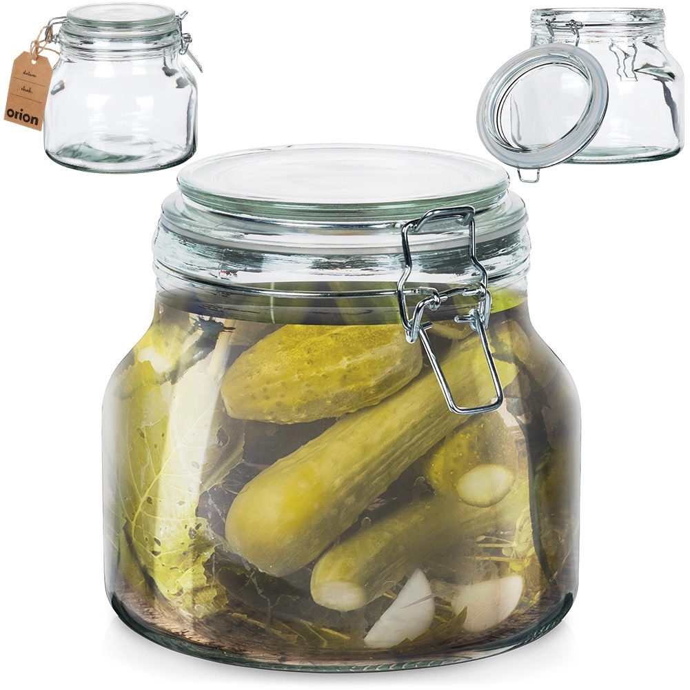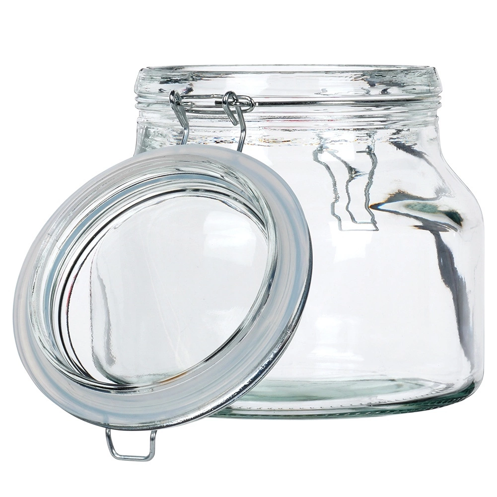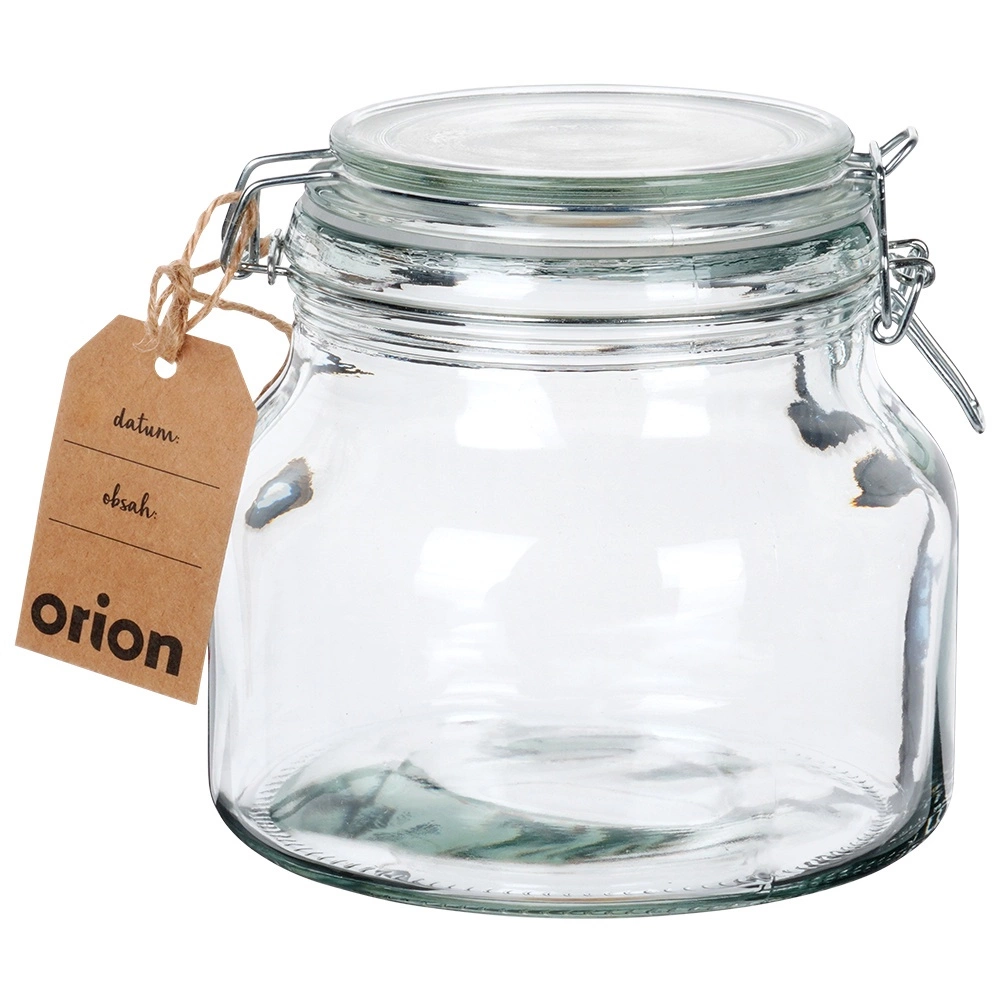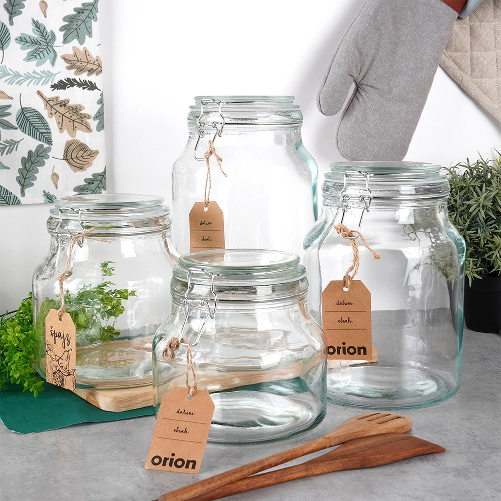 Debelo steklo s širokim vratom se zlahka polni in čisti ter je primerno za shranjevanje suhih živil in vložnin.