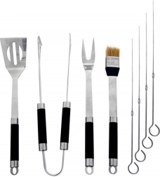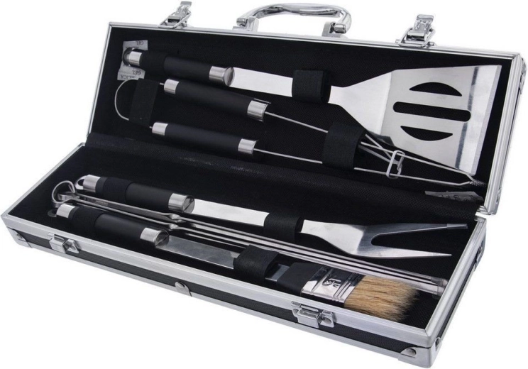 Vse, kar potrebujete za brezskrbno pečenje na žaru, na enem mestu. Ta 9-delni set iz nerjavnega jekla ponuja robustna orodja z udobnimi, dolgimi ročaji za varno in zanesljivo upravljanje ob vročem žaru. Praktičen kovček z ročajem in zapirali omogoča pregledno shranjevanje in enostavno prenašanje.
