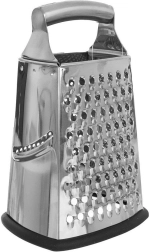 Praktično 4-stransko kuhinjsko strgalo iz kakovostnega nerjavnega jekla za hitro ribanje in rezanje sestavin. Ponuja štiri delovne površine za različna opravila, ima udoben ročaj in protizdrsno gumijasto osnovo za varno in stabilno uporabo. Primerno za pomivalni stroj in idealno za sire, zelenjavo, sadje in začimbe.