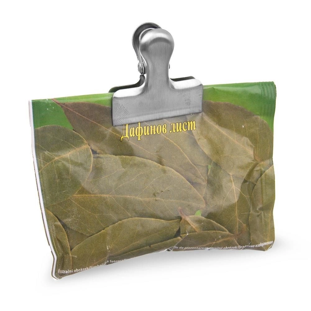 S tem kompletom 3 sponk boste hitro in enostavno zaprli vrečke z začimbami, testeninami, ješprenom, oreški, čipsom in kosmiči. Robustno nerjaveče jeklo zagotavlja močan oprijem, ki preprečuje vlaženje in razsutje vsebine, zato živila ostanejo dlje sveža, vaša kuhinja ali shramba pa pospravljena.