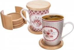Komplet podstavkov iz kakovostnega lesa s plutovinastim vložkom je idealen za vroče in hladne pijače. Plutovinasta površina zanesljivo vpija vlago in zagotavlja protizdrsno stabilnost, zato na mizi ne ostanejo krogi od kozarcev niti sledi po vročih posodah. Brezčasen naraven videz se poda k vsakemu jedilnemu servisu.
