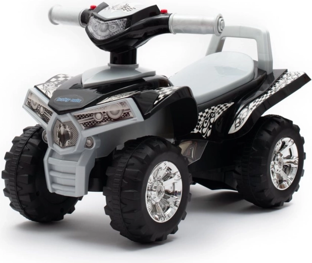 To poganjalo štirikolesnik BABY MIX v sivi barvi je odličen sopotnik za prve korake in vožnje. Ponuja udoben, širok sedež, stabilno konstrukcijo in enostavno upravljanje s krmilom. Zaradi igrivih efektov – hupe, treh shranjenih melodij in utripajočih lučk – bodo otroci uživali v obilici zabave in motivacije za gibanje.
