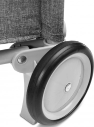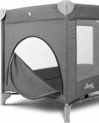 Mera ležišča 120 × 60 cm je standardna, zato boste zlahka našli rjuhe in dodatke. Priložena je mehka zložljiva vzmetnica, ki je idealna za občasno spanje in počitek na poti.