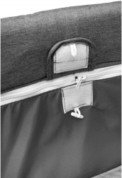 Odporna melirana tkanina se zlahka čisti, praktični žepi in deli na zadrge pa olajšajo organizacijo nujnih stvari na poti.