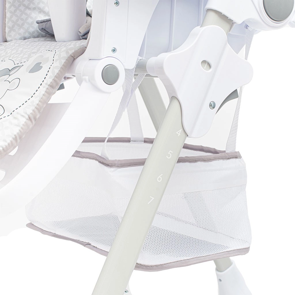 Sedem nastavitev višine omogoča preprosto prilagoditev stolčka višini jedilne mize in potrebam rastočega otroka.