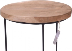Komplet treh okroglih mizic v različnih velikostih vam omogoča enostavno prilagoditev razporeditve prostora. Masivne plošče iz naravne tikovine navdušujejo z lepo strukturo lesa in odpornostjo, medtem ko stabilno kovinsko ogrodje s črnim prašnim lakom poudari sodoben industrijski videz.