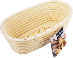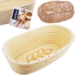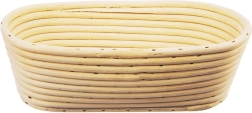 Praktična ovalna košara iz naravnega ratana je idealna za vzhajanje krušnega testa težkega približno 1 kg (cca 500 g moke). Rebrasta notranja struktura in motiv klasa na dnu ustvarita na hlebčku dekorativni odtis, medtem ko višje stene zanesljivo zadržijo testo, da se po prevrnitvi na pekač ne razlije.