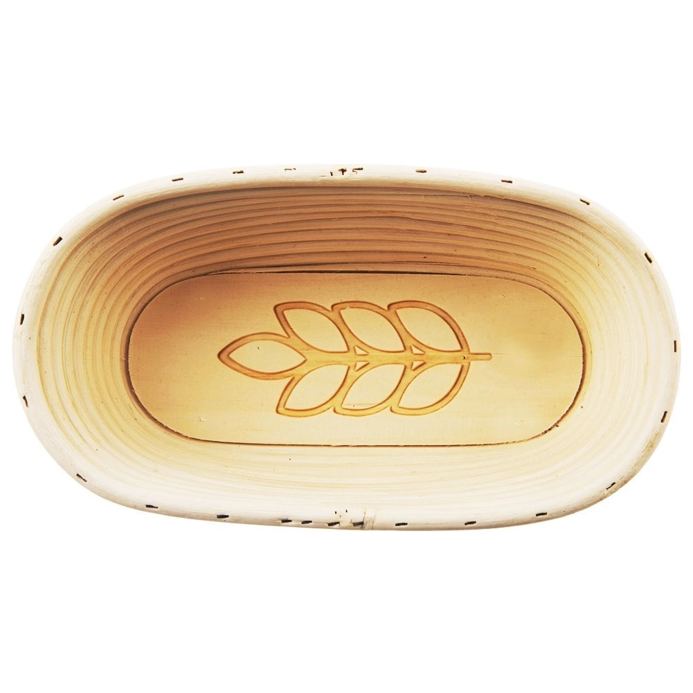 Ovalna ratanova košara za kruh s prostornino približno 1 kg pomaga testu pravilno vzhajati in ohraniti obliko. Iz naravnega ratana v bež barvi, z dekorativnim motivom klasa in rebrasto notranjostjo za tradicionalen spiralni vzorec na skorji. Primerna za domače peke in gastronomijo. Stabilizira obliko testa, spodbuja kroženje zraka in ustvari privlačen rustikalen vzorec na hlebčku.