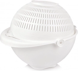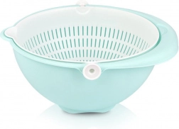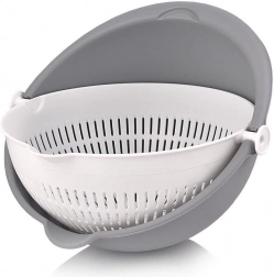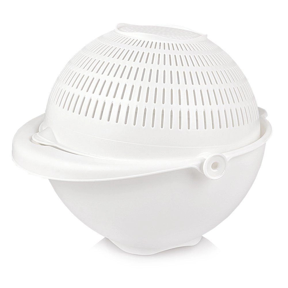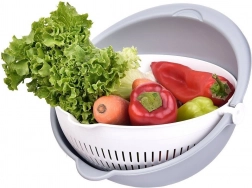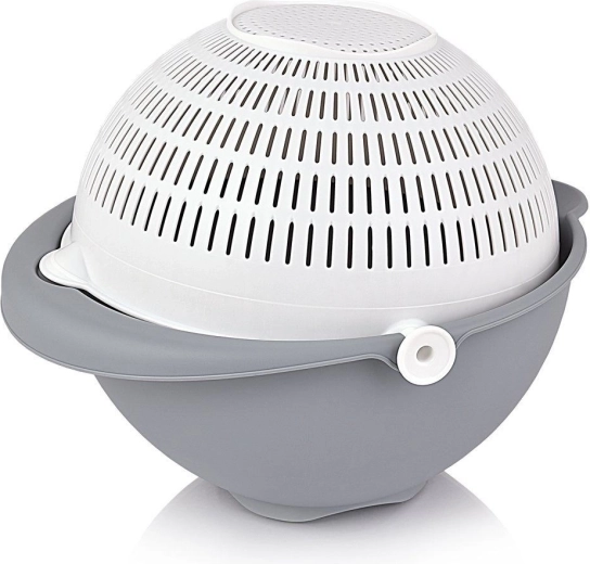 Odkrijte pametno rešitev za vsakodnevna kuhinjska opravila. Vrtljivo cedilo, nameščeno v posodi, omogoča hitro izpiranje in odvajanje vode brez prelaganja sestavin. Pri nagibanju cedilo ostane vodoravno, zato je vsebina na varnem, voda pa odteče v zunanjo posodo.