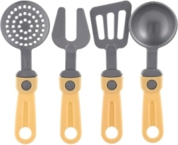 Set vsebuje tri posode s pokrovi in štiri različna kuhinjska orodja, idealna za različne vrste domišljijskih kuharskih dejavnosti.