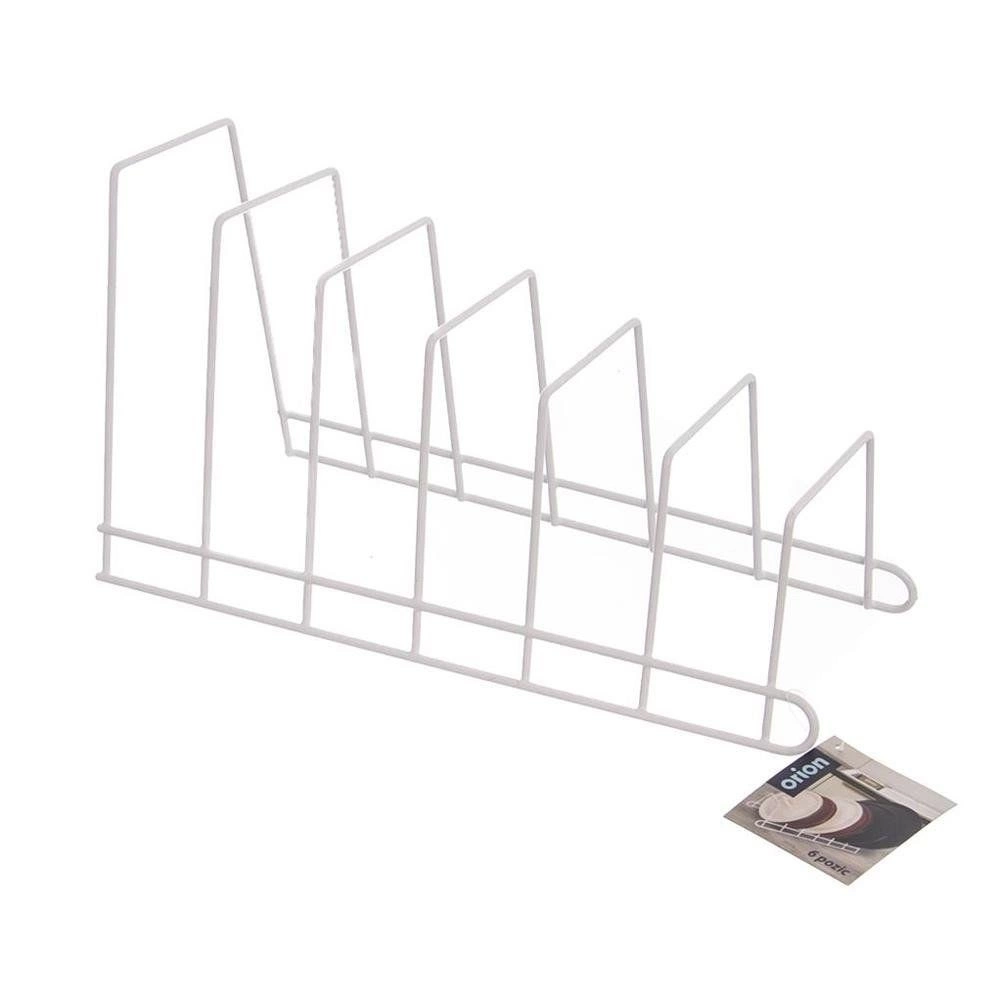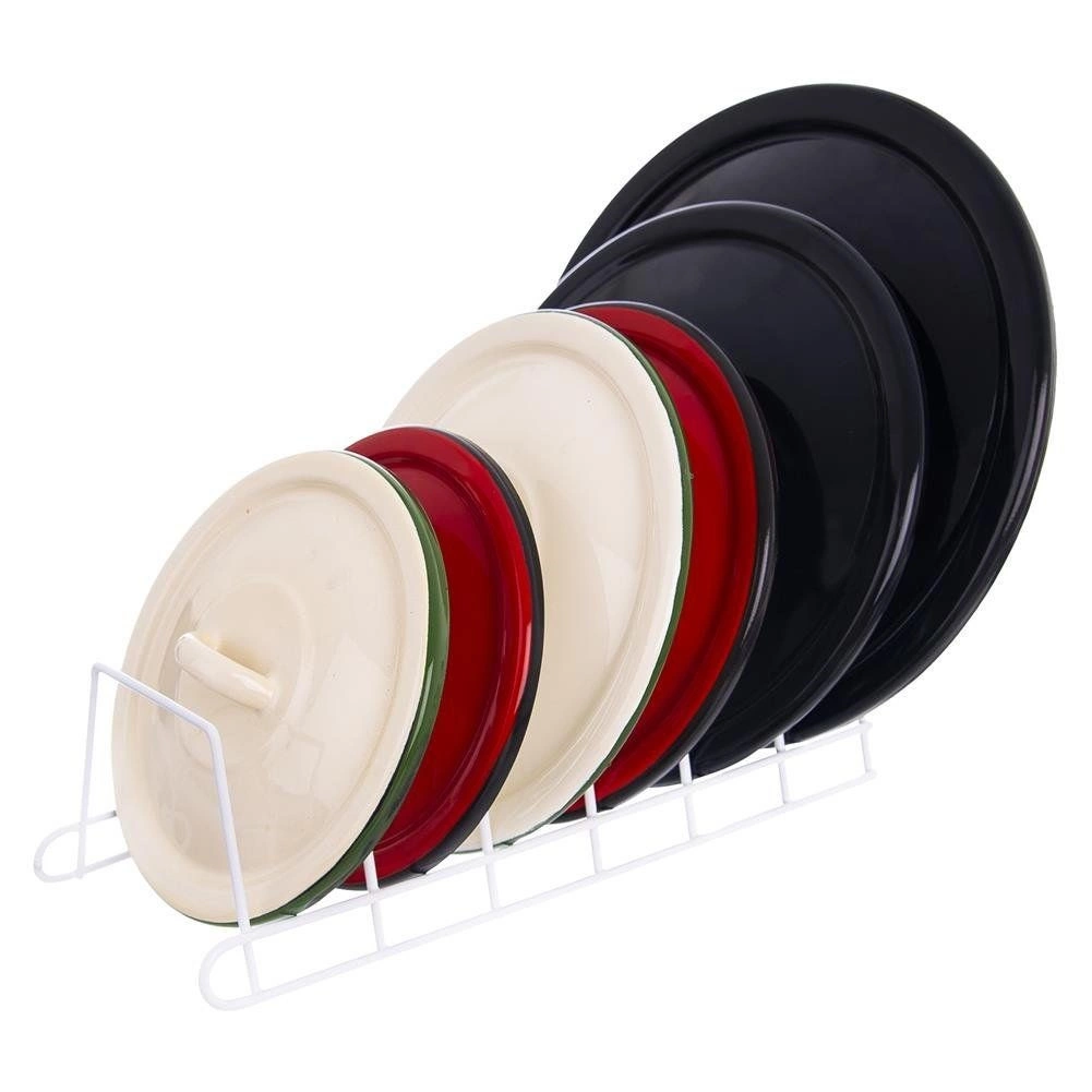 Ohranite red v kuhinji s kompaktnih stojalom z razdelitvijo na 6 mest. Odprta žičnata konstrukcija drži pokrove, plitke krožnike in deske pregledno in z hitrim dostopom, hkrati pa preprečuje njihovo premikanje in poškodbe. Postavite ga lahko na delovni pult, v omarico ali v globok predal.