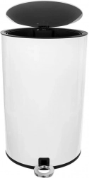 Eleganten in funkcionalen koš za odpadke v beli barvi je idealna izbira za dom in pisarno. Kovinsko ohišje se zlahka čisti, pedalni mehanizem zagotavlja največjo higieno brez dotikanja z rokami, samozapiralni pokrov pa preprečuje uhajanje neprijetnih vonjav.