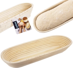 Ta ovalna košara iz naravnega ratana je odličen pomočnik pri pripravi tradicionalnih hlebcev. Zračna spiralna konstrukcija podpira pravilno kroženje zraka, odvaja odvečno vlago in pomaga ustvariti hrustljavo skorjo s tipičnim rebrastim vzorcem.