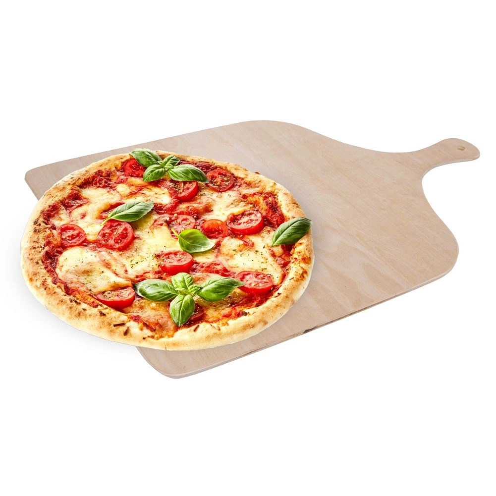 Širok in tanek čelni rob omogoča tekoče potiskanje pod osnovo pice, medtem ko kakovostna lesena vezana plošča zagotavlja stabilnost pri prenašanju. Zahvaljujoč odprtini v ročaju jo zlahka obesite in imate vedno pri roki.