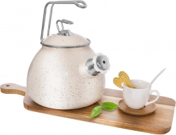 Udobno uho za zanesljiv oprijem, bambusovi krožnički preprečujejo poškodbe miz zaradi toplote in ujamejo kapljice.