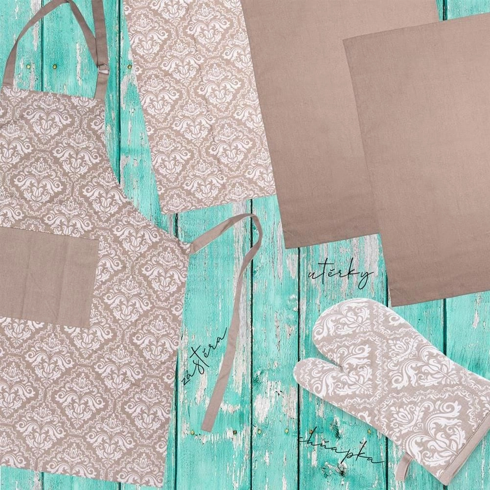 Odkrijte udobje in zaščito pri kuhanju s predpasnikom iz kakovostnega bombaža v dimenziji 71 × 86 cm. Univerzalni kroj z dolgimi vrvicami omogoča enostavno prilagoditev vsaki postavi, bež damastni vzorec pa vaši kuhinji doda eleganten videz.