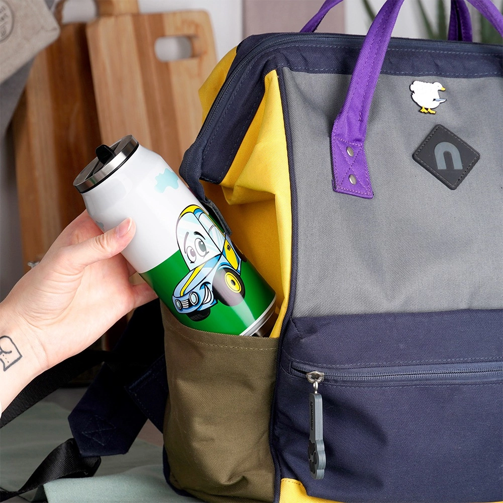 Praktičen in trpežen termo lonček z otroškim motivom avtomobilčkov združuje sodoben dizajn in funkcionalnost. Zahvaljujoč kakovostnemu nerjavečemu jeklu znotraj in zunaj je odporen na udarce in korozijo ter se enostavno čisti. Vakuumska izolacija ohrani kavo, čaj ali kakav do 12 ur tople ter limonado ali vodo do 8 ur hladne.
