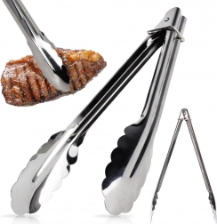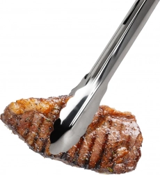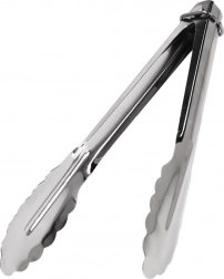 Te vsestranske kuhinjske klešče iz kakovostnega nerjavnega jekla bodo nepogrešljiv pomočnik v vsakem gospodinjstvu. Z ergonomskim ročajem in nazobčanimi konci zagotavljajo čvrst in zanesljiv oprijem, ne glede na to, ali obračate steake v ponvi, jemljete koruzo z žara ali servirate solato.