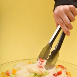 Nazobčani konci in vzmetni mehanizem omogočajo varen prijem mesa, zelenjave in testenin brez drsenja – idealno za kuhanje in serviranje.