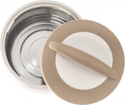 Notranja gladka površina se enostavno čisti, vrtljiv pokrov pa omogoča hitro in varno zapiranje. Za maksimalen učinek skledo predhodno segrejte z vročo vodo ali jo predhodno ohladite v hladilniku, če želite ohraniti jedi hladne. Opozorilo: posoda ni 100% neprepustna – za prenašanje tekočin jo držite v navpičnem položaju.