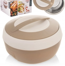 Uživajte v jedi pri idealni temperaturi s termo skledo COSMOS 3,5 l znamke ORION. Dvojna konstrukcija z nerjavečo notranjostjo in odpornim plastičnim plaščem pomaga ohraniti toploto do 2 uri ali pa ohraniti hladne sladice. Zaradi lahke zasnove in velikega ročaja se udobno prenaša.