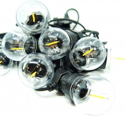 Kroglaste žarnice z LED filamenti oddajajo prijetno toplo svetlobo, ki poudari vzdušje večernega druženja na terasi ali vrtne zabave.