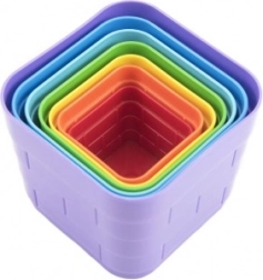 Vzdržljiva plastika brez ostrih robov je primerna za igro doma in na prostem – kocke lahko vzamete v pesek ali v vodo. Deli se preprosto zložijo en v drugega, zato set ne zavzame veliko prostora in ga je enostavno pospraviti.
