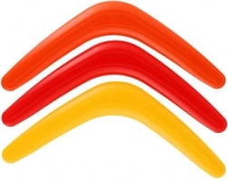 Lahek in vzdržljiv plastični bumerang dolžine 28 cm za zabavo na vrtu in v parku. Zaradi aerodinamične oblike se ob pravilnem metu vrne nazaj, izrazite barve za boljšo vidljivost in enostavno upravljanje pa bodo razveselile otroke od 3 let naprej.