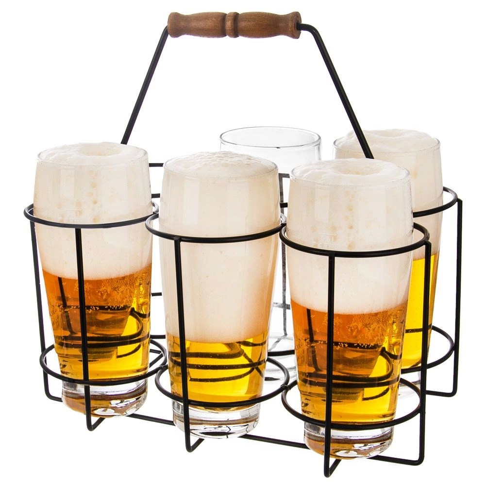 Vzdržljiva kovinska košarica za prenašanje steklenic ali kozarcev nudi varno organizacijo in udobno rokovanje. Šest ločenih krožnih držal drži posode trdno na mestu, medtem ko leseni ročaj zagotavlja udoben oprijem. Odlična rešitev za dom, vrt, teraso in serviranje pijač na žaru.