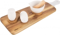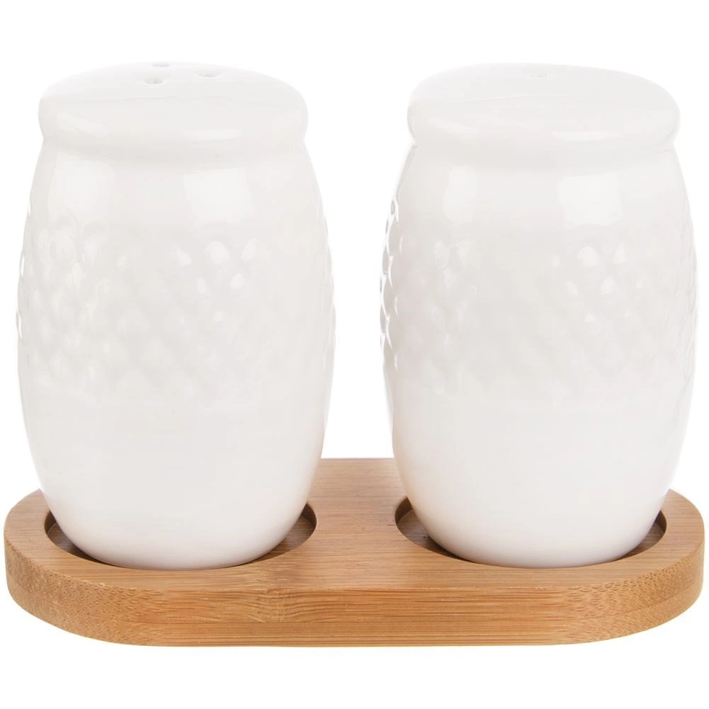 Ta 3-delni set WHITELINE združuje čist dizajn in praktičnost. Dve beli porcelanasti posodici z elegantnim, vtisnjenim dekorjem sta postavljeni na kakovostno bambusovo stojalo, ki ohranja red na kuhinjskem pultu in jedilni mizi. Zahvaljujoč diskretnim dozirnim odprtinam boste pri kuhanju in serviranju nasuli natančno količino soli in popra.