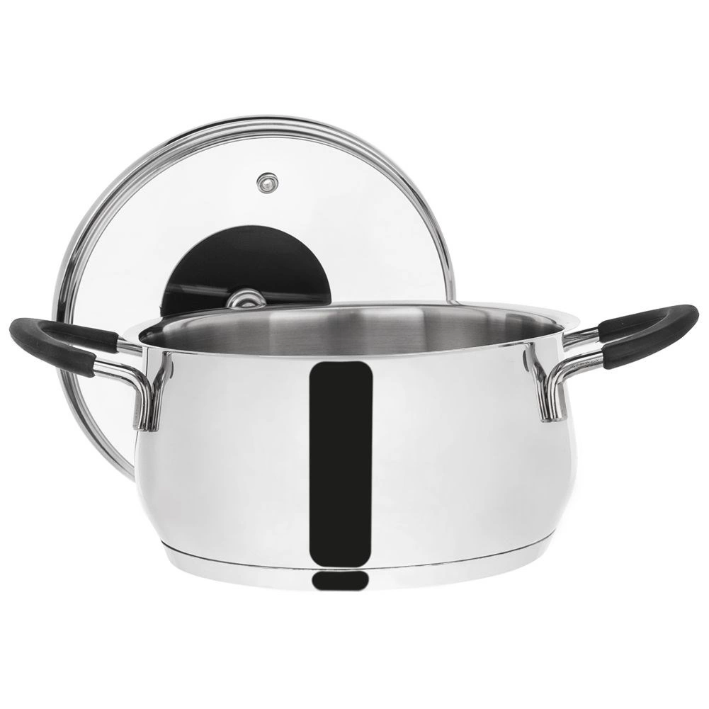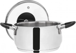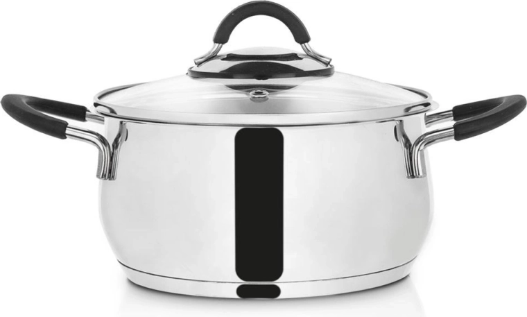 Skuhajte juhe, omake in priloge učinkovito in z zagotovilom odličnega rezultata. Lonec DALIE iz nerjavnega jekla 304 (18/10) se odlikuje po robustni izdelavi, debelih stenah in steklenem pokrovu z izpušnim ventilom za nadzor pare. Zahvaljujoč večplastnemu akutermičnemu dnu odlično akumulira in enakomerno razporeja toploto, zato kuhate hitreje in bolj varčno.