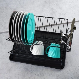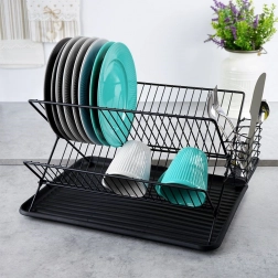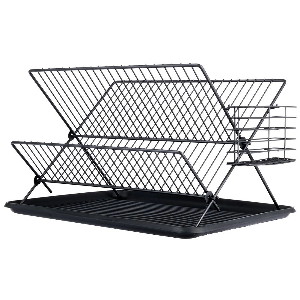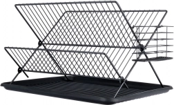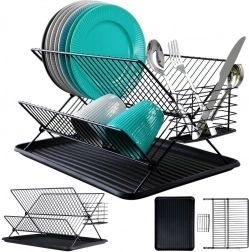 Odcejevalnik je izdelan iz odporne kovine v elegantni črni barvi, ima nedrseče nogice za stabilnost ter odstranljiv plastičen pladenj za enostavno izlivanje vode in čiščenje. Zložljiva konstrukcija prihrani prostor, ko ne potrebujete polne kapacitete.