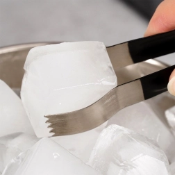 S protizdrsnimi zobci na kleščah boste kocke ledu varno prenesli brez stika z rokami.