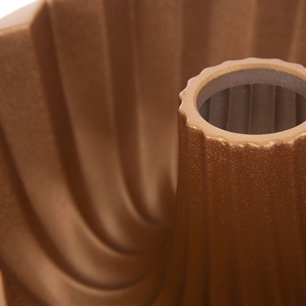 Ta robustna potičnica s tulcem je idealna za vsakodnevno peko in praznične deserte. Izdelana iz kakovostnega aluminija z notranjo neprijemljivo prevleko PFLUON zagotavlja enakomeren prenos toplote in brezskrbno odstranjevanje pečenega testa. Bakrena izvedba vaši kuhinji doda edinstven slog.